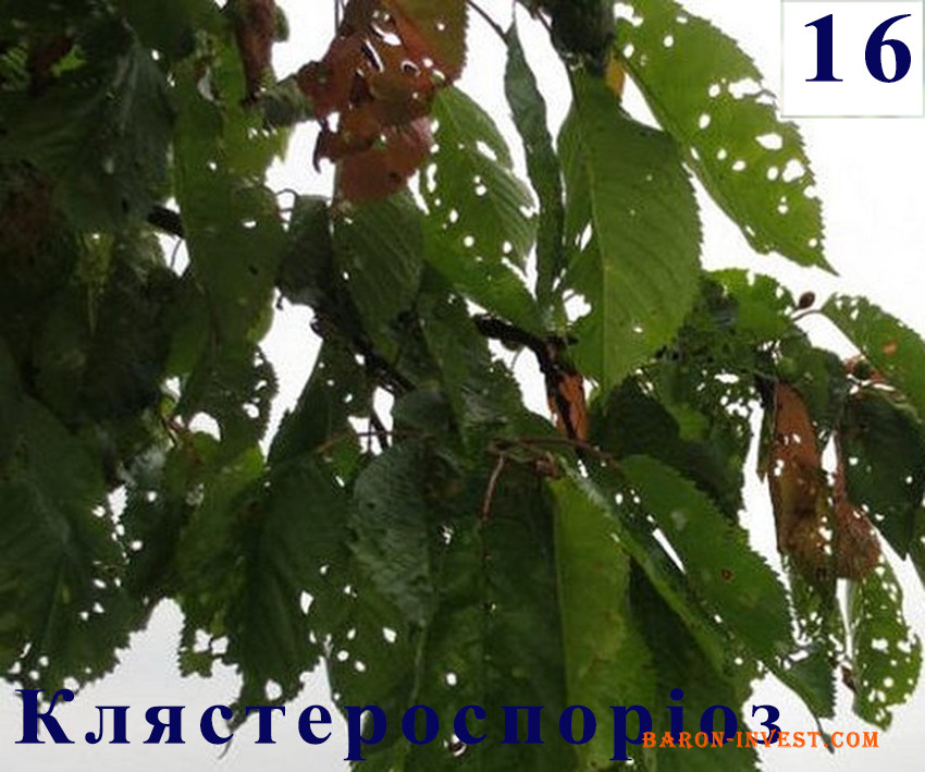 16 Хвороба рослини – Клястероспоріоз (дірчаста плямистість)