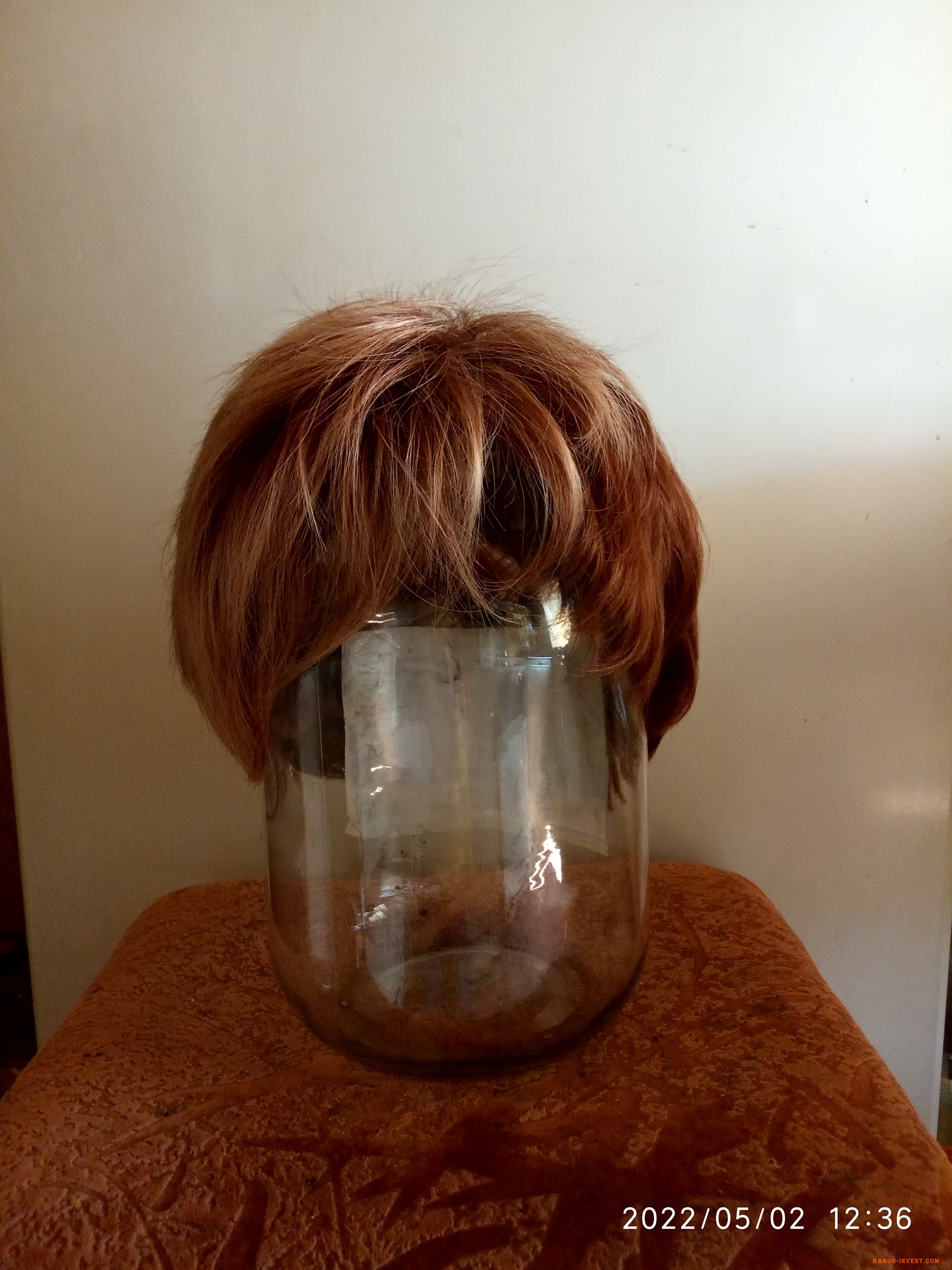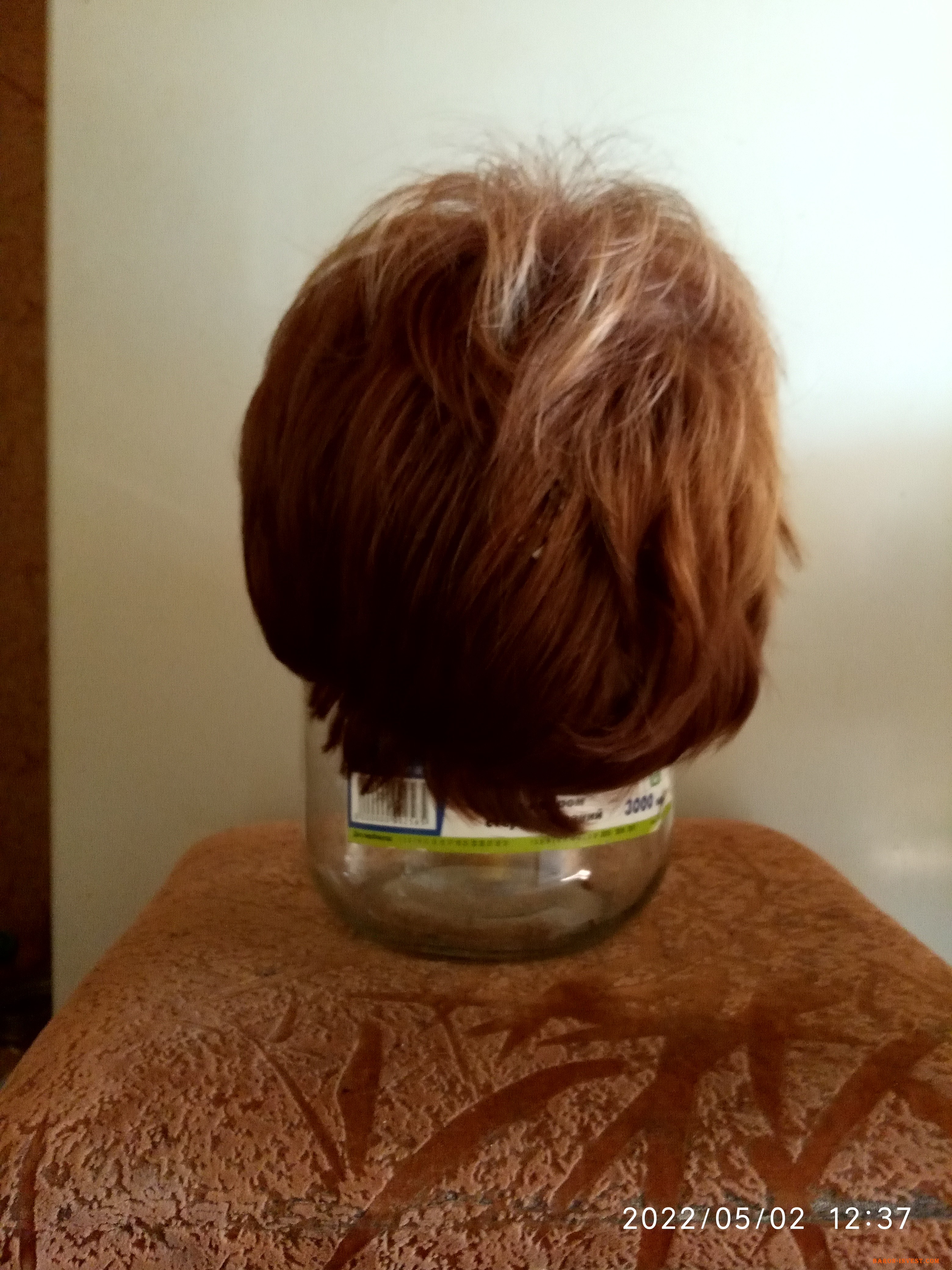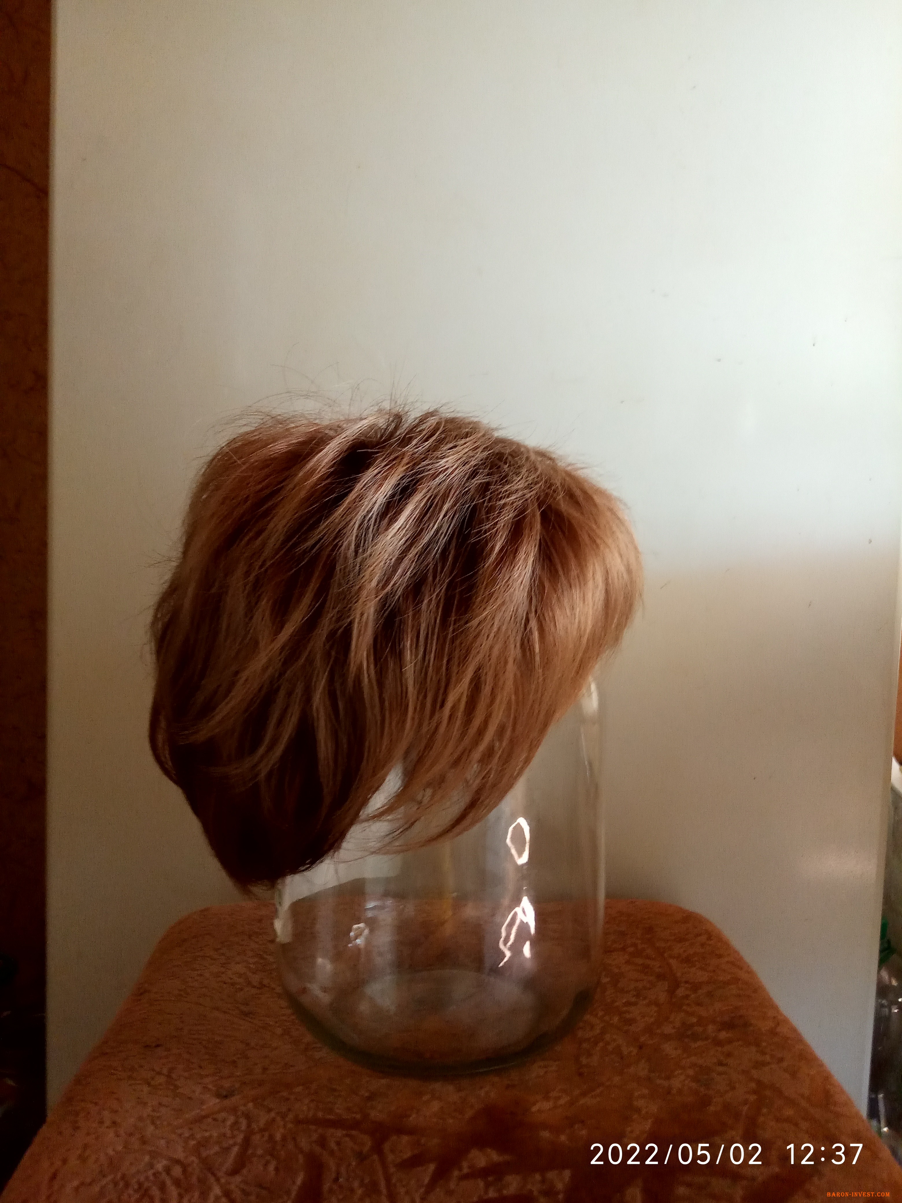 Штучна коротка перука русявого кольору з міліруванням. Виробник: Китай.