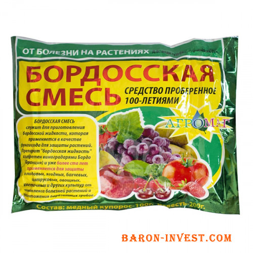 Бордоська суміш 300 г – перевірений часом фунгіцидний засіб універсального призначення. Застосування бордоської суміші виправдано в саду й на городі – для викорінення парші на груші або ж для боротьби з фітофторозом огірків. Найчастіше садівники використовують бордоську суміш для догляду за плодовими саджанцями – препарат крім профілактики грибкових хвороб пригнічує ріст мохів та лишайників, а також допомагає впоратися з зимуючими формами комах-шкідників.