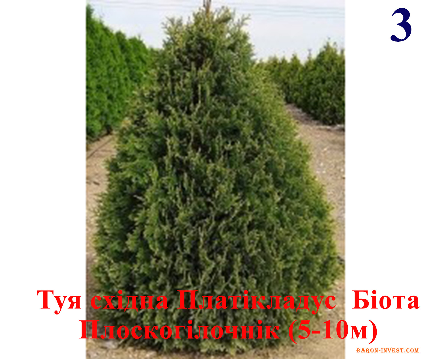 3) Туя східна Платікладус / Біота/ Плоскогілочнік (5-10м)