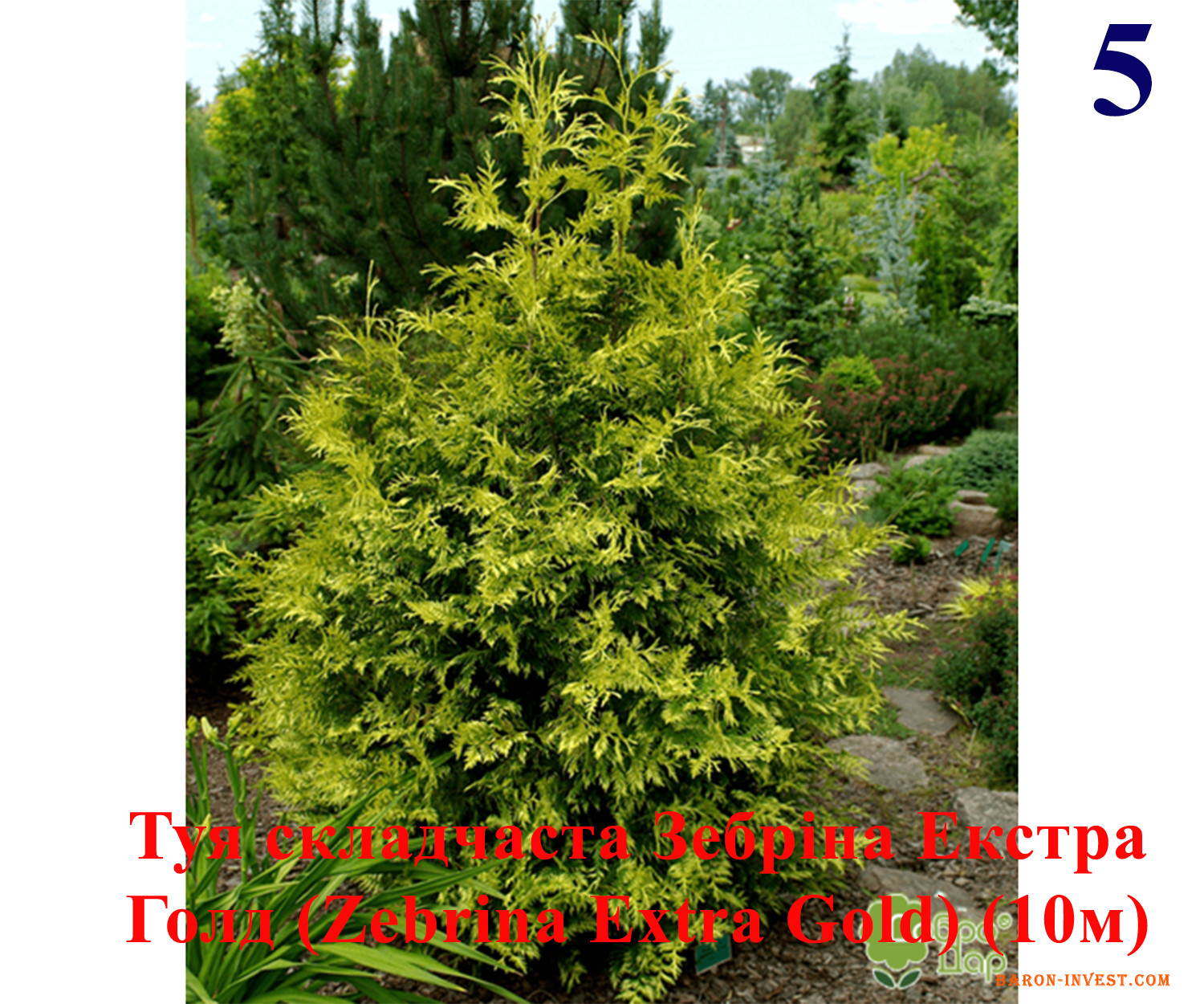 5) Туя складчаста Зебріна Екстра Голд (Zebrina Extra Gold) (10м)