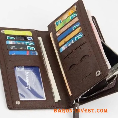 2 великих відділення під купюри і телефон, 1 відділення під монети,