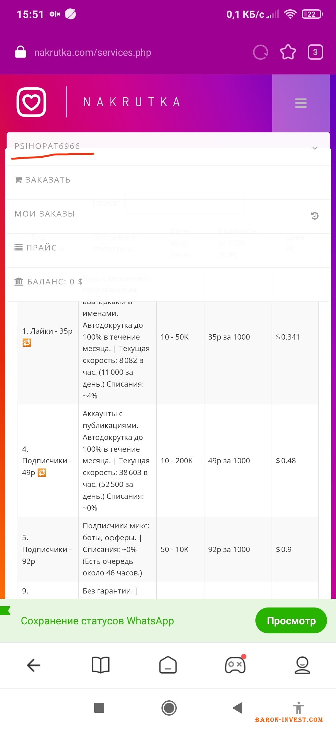Також можливо використовувати цей сайт як робочу платформу , ви виставляете оголошення, з послугами розкрутки інстаграм акаунтів , і ставите свою націнку , так як ви бачите там послуги платні , але ціни там в тричі менші відносно до українського ринку по розвитку інстаграм акаунтів , тому , коли у вас буде клієнт , по розвитку , ви зможете поставити свою ціну , и с допомогою сайту виконувати роботу піар менеджера , тільки попереджаю , не завищуйте ціни відносно ринку .