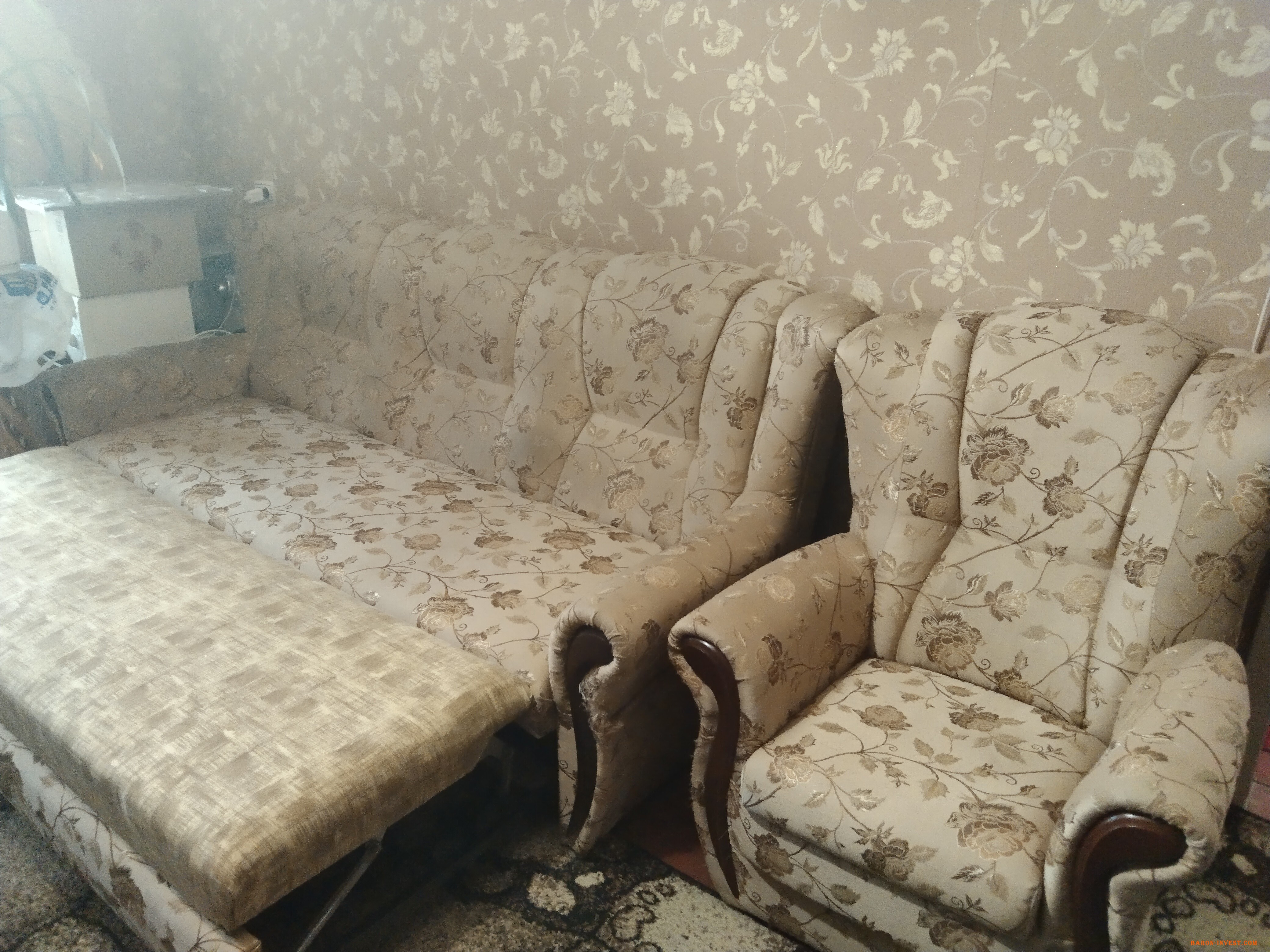 Продам диван и два кресла в отличном состоянии. Немного повреждена обивка на креслах ( котом)