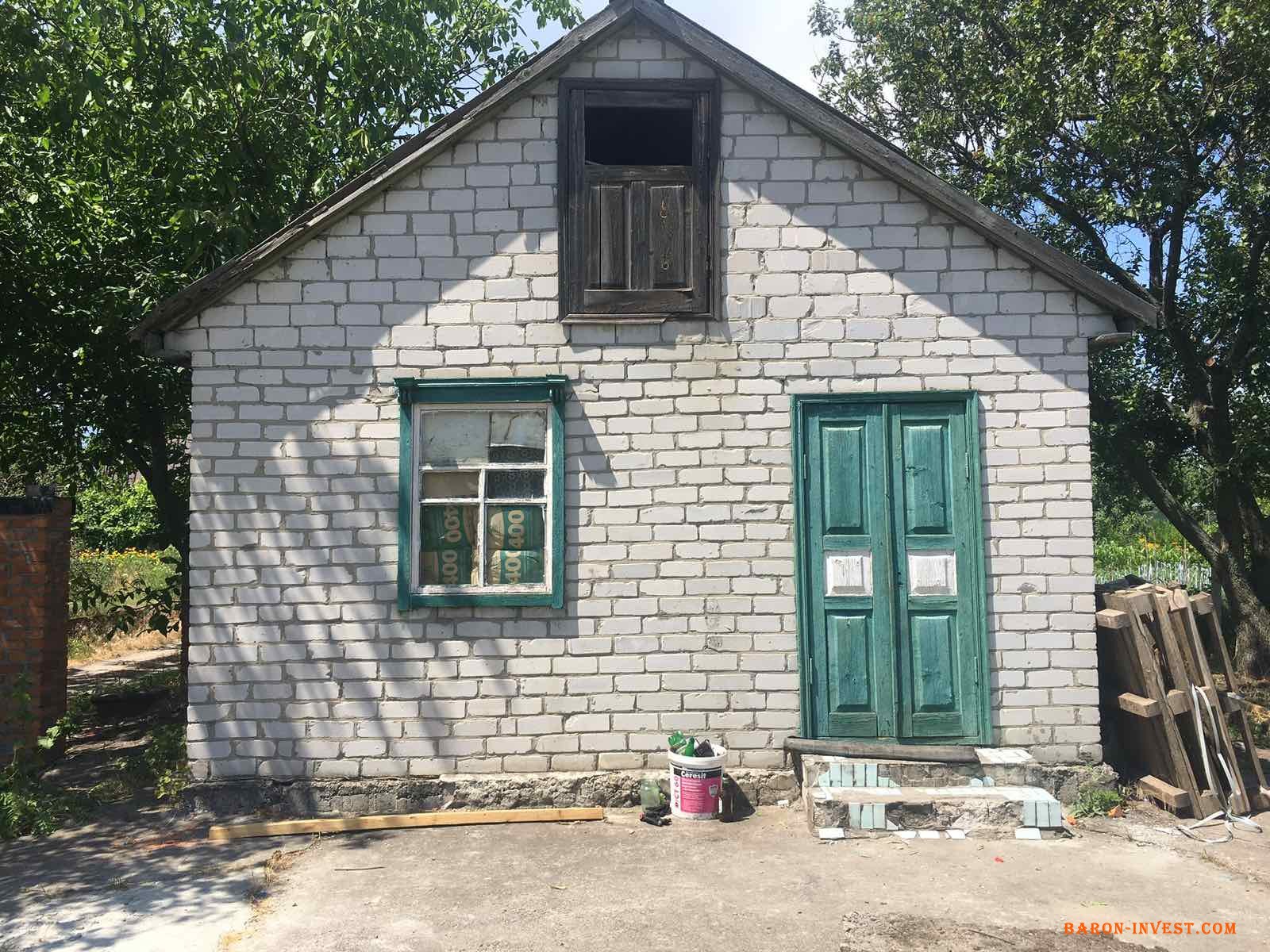 На участке стоит кирпичный дом 5×5