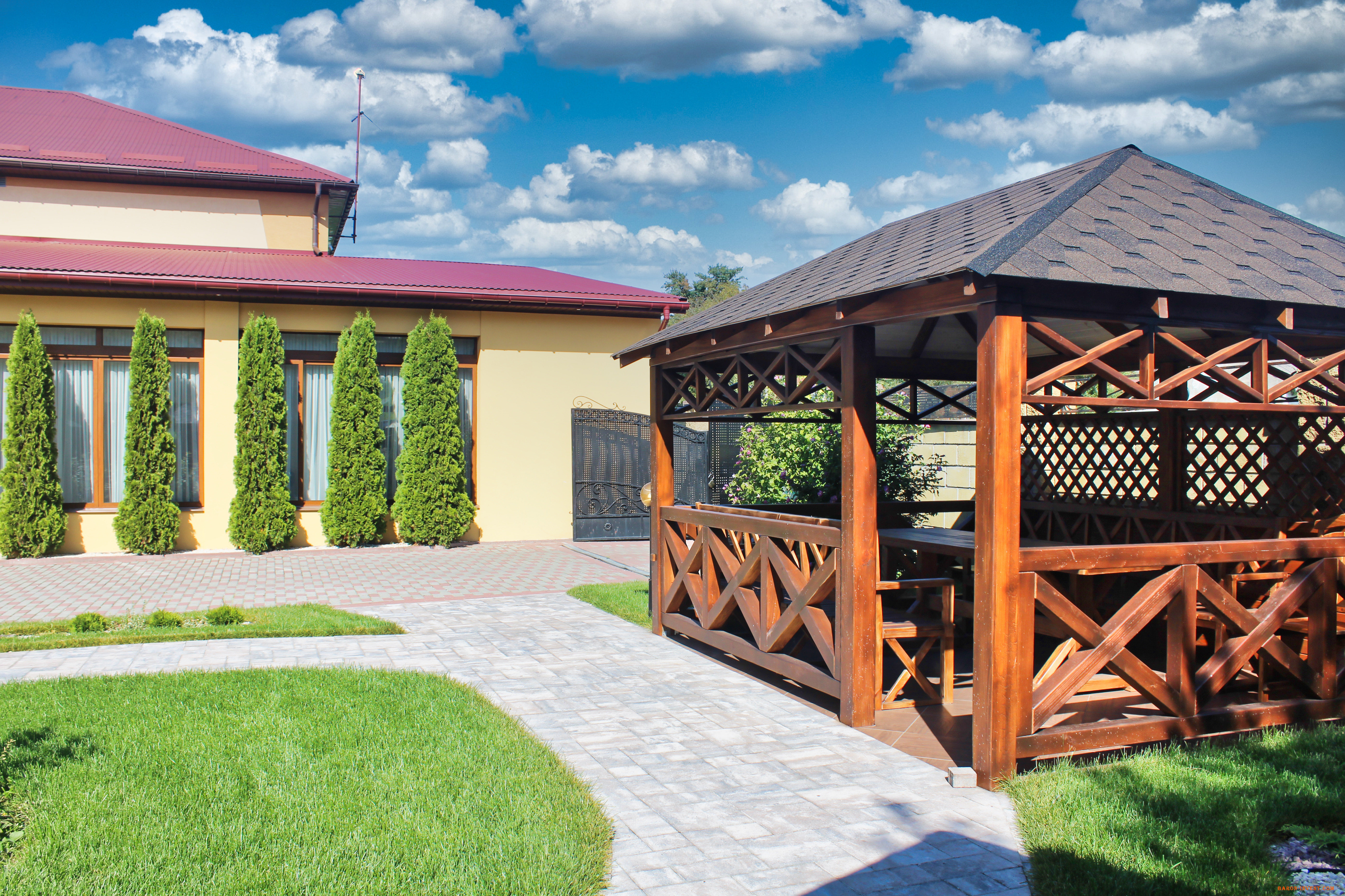 Щодо декорування залу, танцмайданчиків та території, то тут ви можете доручити роботу власному дизайнеру, або ми порекомендуємо якісного підрядника. На нашій території також можна знайти альтанки та крісло-гойдалку. У якості нашої смачної кухні ви можете пересвідчитися самі, зателефонувавши заздалегідь та завітавши до нас.