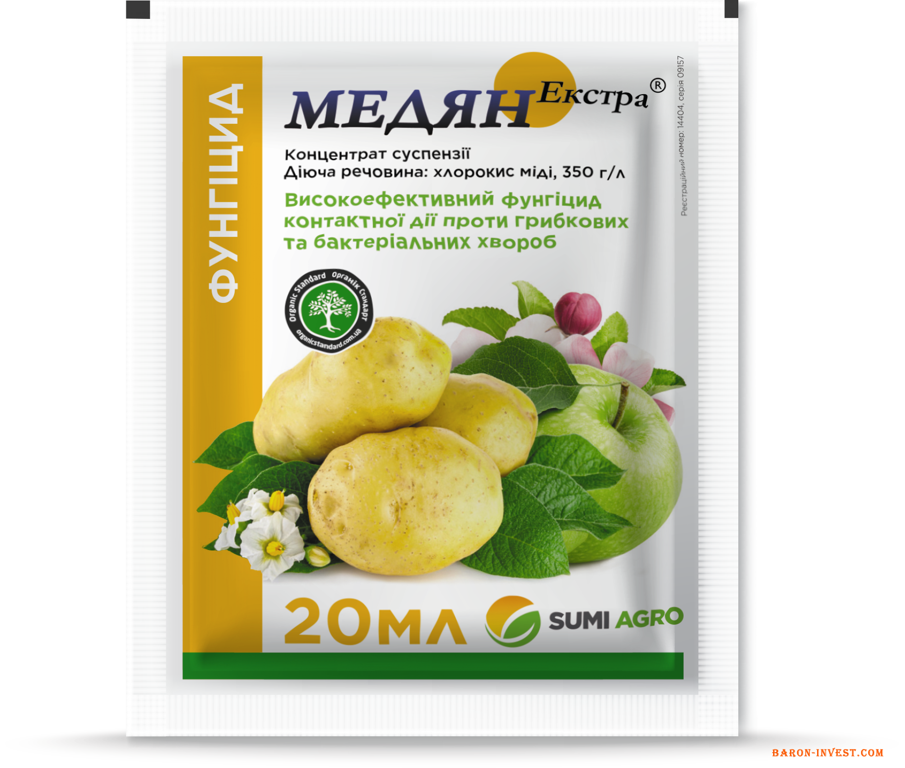 МЕДЯН ЕКСТРА 350, КС – контактний фунгіцид, що має профілактичну дію проти широкого спектру збудників хвороб та призначений для запобігання грибковим і бактеріальним захворюванням, що вражають картоплю та яблуні