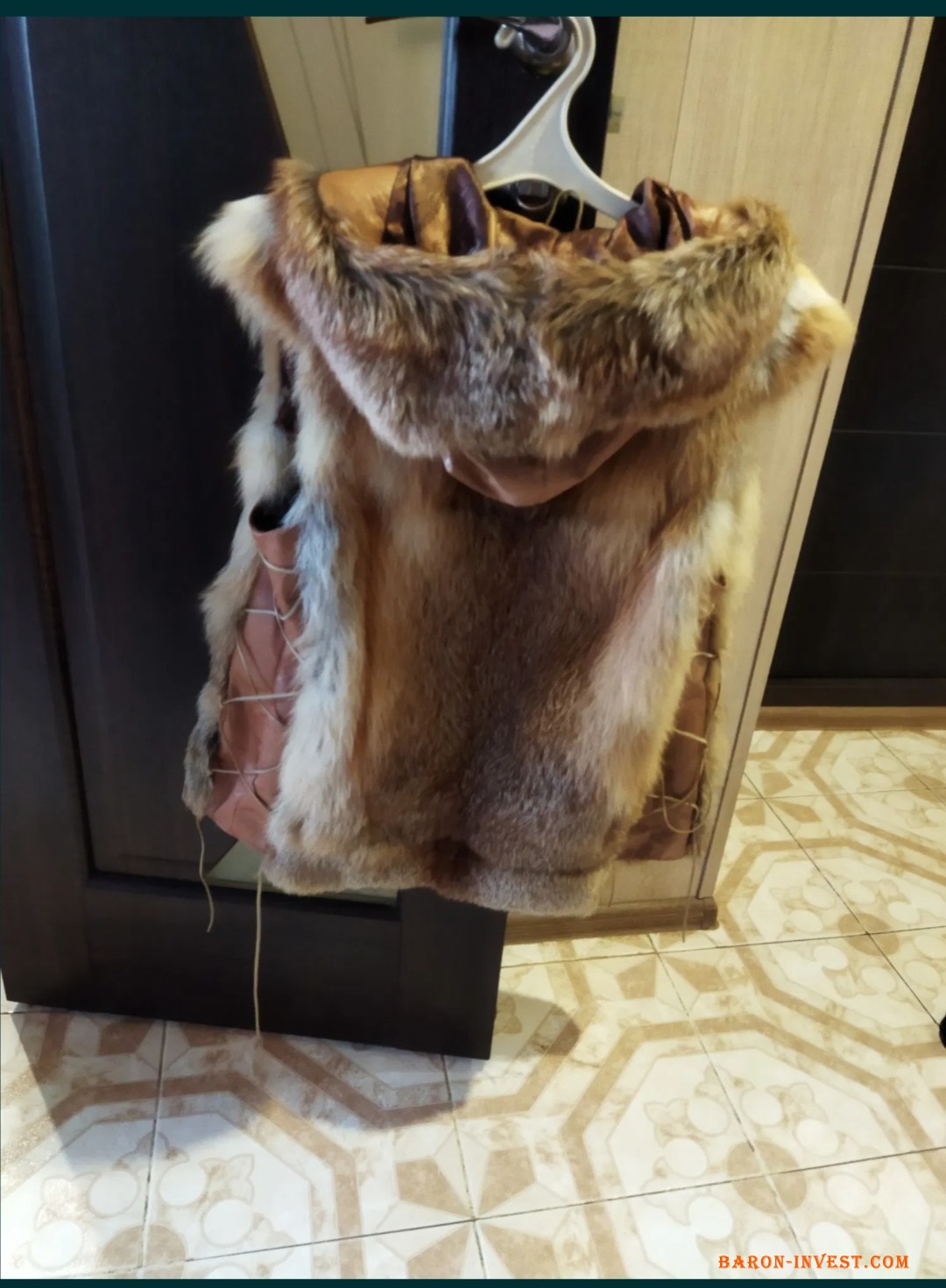 Жилетка лисица, на замке, с капюшоном, и боковыми вставками, для регулирования размера