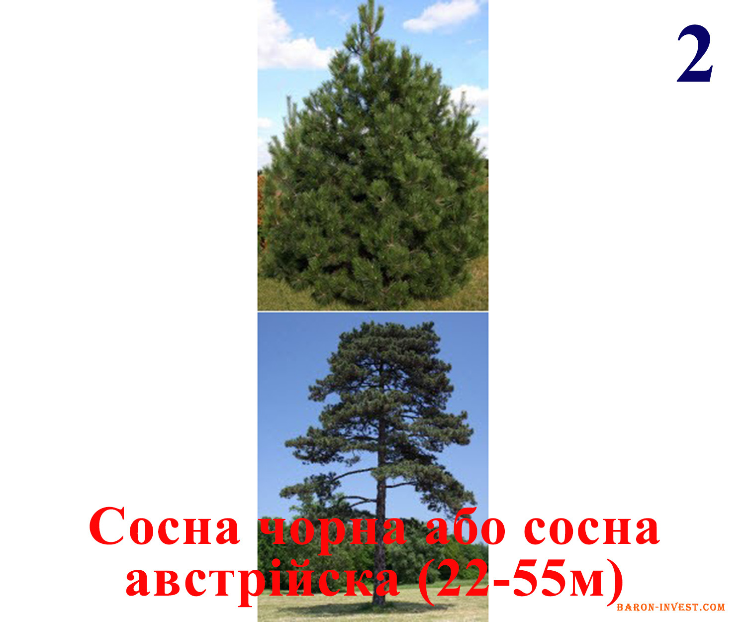 2) Сосна чорна або сосна австрійська (22-55м)