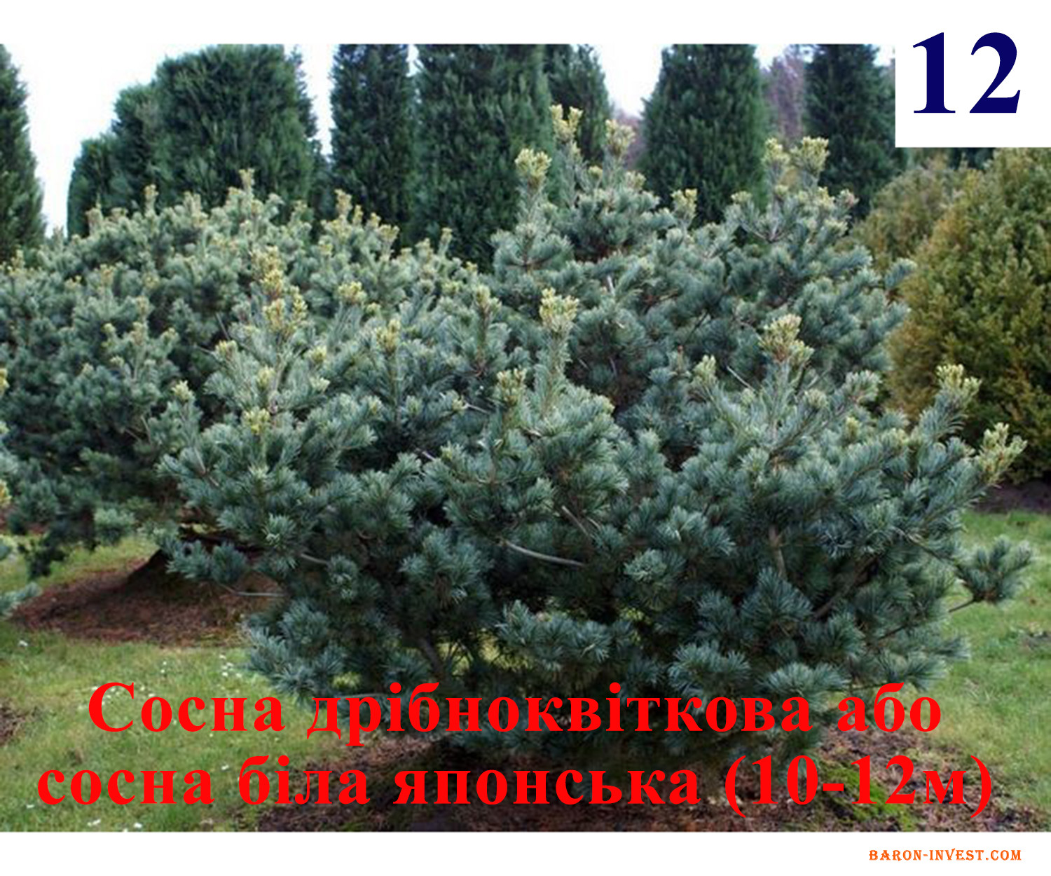 12) Сосна дрібноквіткова або сосна біла японська (10-12м)