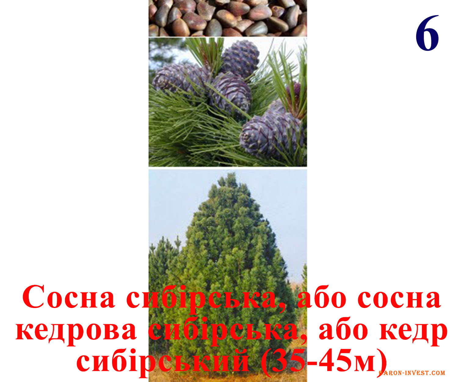 6) Сосна сибірська, або сосна кедрова сибірська, або кедр сибірський (35-45м)