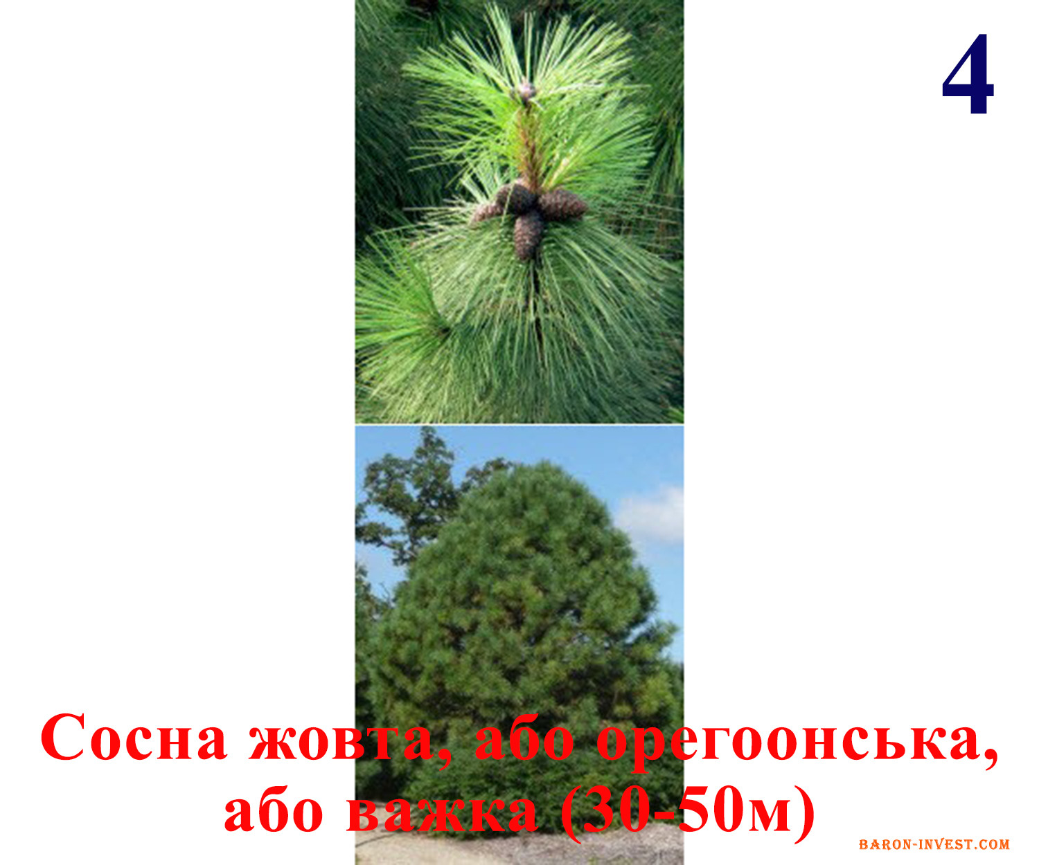 4) Сосна жовта, або орегоонська, або важка (30-50м)