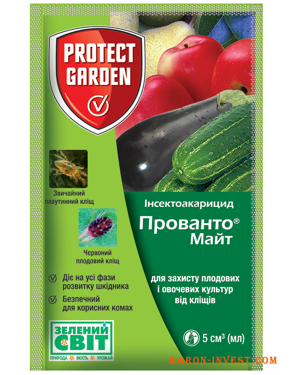 Прованто® Майт 240 SC, КС — акарицид контактно-системної дії з широким спектром активності для захисту плодових та овочевих культур від рослинноїдних павутинних кліщів.