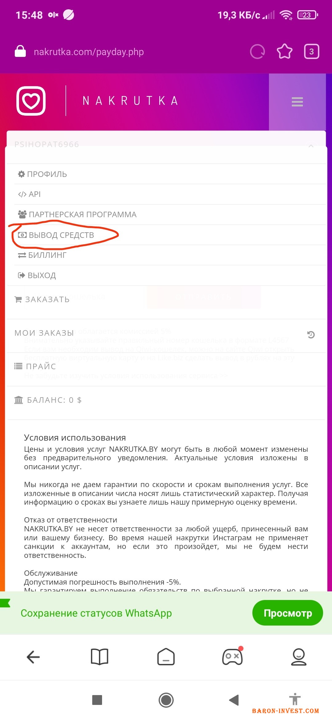 За для вашої впевненості , можу надати вам посилання на сайт з яким ви в подальшому будете працювати , и ви переконаєтесь у тому що без придбаного посилання ціною всього 45 грн, ви просто не зможете зайти і почати заробляти а також можу надати знімки екрана , де детально показано куди потрібно переходити и де знайти своє посилання яке ви і будете продавати , також і перевіряти свій поточний рахунок відсотків покупців які будуть переходити за проданим вами посиланнями.